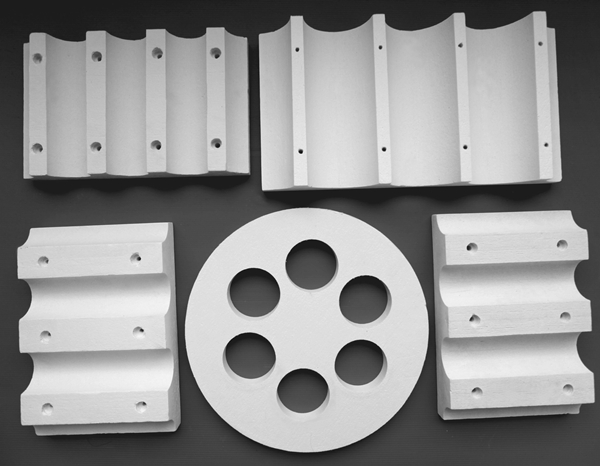 ● 陶瓷纖維異型件,均為滿足某些工業(yè)部門(mén)特定生產(chǎn)環(huán)節(jié)所需異形制品,每種制品根據(jù)其形狀和尺寸需要制作專(zhuān)用的模具,根據(jù)制品的性能要求,選用不同的結(jié)合劑和添加劑,以滿足使用要求。